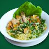Mì tươi và thịt cá tươi phi lê; hành phi; hành lá, hẹ; xà lách. Vị ngọt ngào mà thanh đạm của nước lèo hầm từ xương heo cùng những miếng cá tươi ngon, thêm cọng mì giòn sẽ dễ dàng chinh phục những thực khách khó tính nhất.